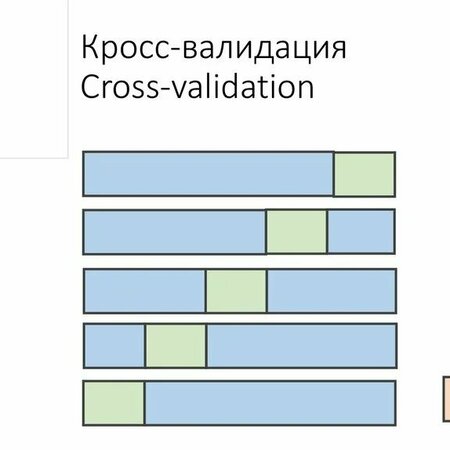 Берутся тренировочные данные. Задается количество "фолдов" (fold), обычно для кросс-валидации это число 5. Это значит что алгоритм случайным образом перемешает данные и выберет 4 доли на тренировку модели, а одну - для теста. И так 5 раз, то есть модель будет тренироваться 5 раз.