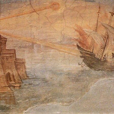 Архимед в III веке до н.э. во время осады Сиракуз использовал, согласно письменным свидетельствам, зеркала, которые отражали солнечный свет прямо во вражеские корабли. Якобы таким образом Архимед сжёг целый флот. Какой площади должны были быть такие зеркала?
