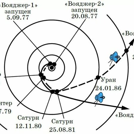 Вояджер 1 и 2, которые несколько лет назад выскочили из Солнечной системы и со скоростью 17 км/сек летят сегодля (а в целом уже более 44 лет) в свободном пространстве к звёздам.