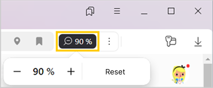 If you set the page zoom to a value other than 100%, a zoom indicator appears on the right side of the SmartBox. To change the zoom level:
