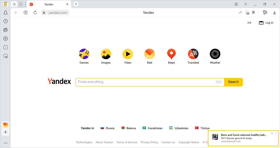 To save the settings, log in with your Yandex ID. If you are not logged in, the notification settings are saved in the Yandex Browser cookie file and deleted the next time you clear the cookies.