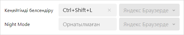Қажетті кеңейтімді жылдам іске қосу немесе жұмыс кезінде әрекеттерді орындау үшін ыстық пернелерді орнатуға болады:
