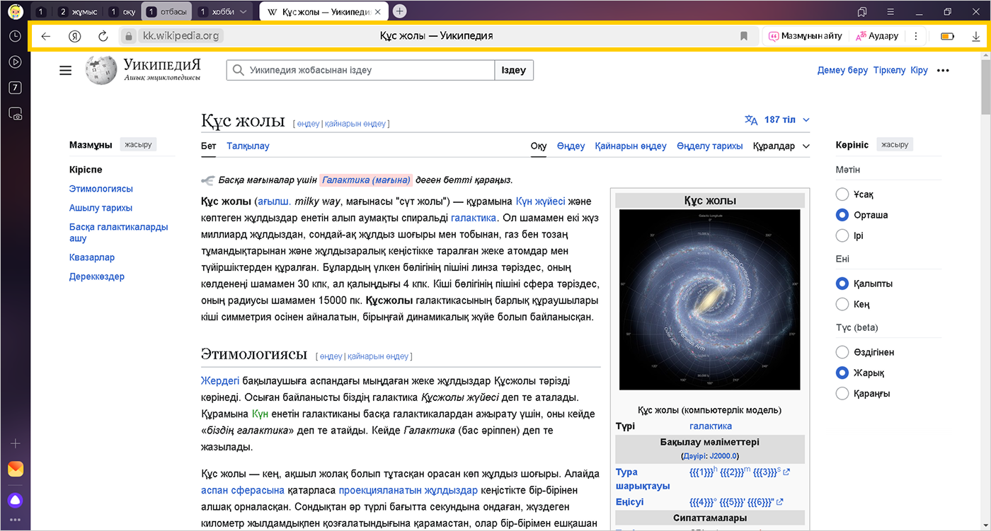 Ақылды жолда әртүрлі құралдар мен ағымдағы сайт туралы ақпаратқа жылдам қол жеткізуге мүмкіндік беретін белгішелер бар.