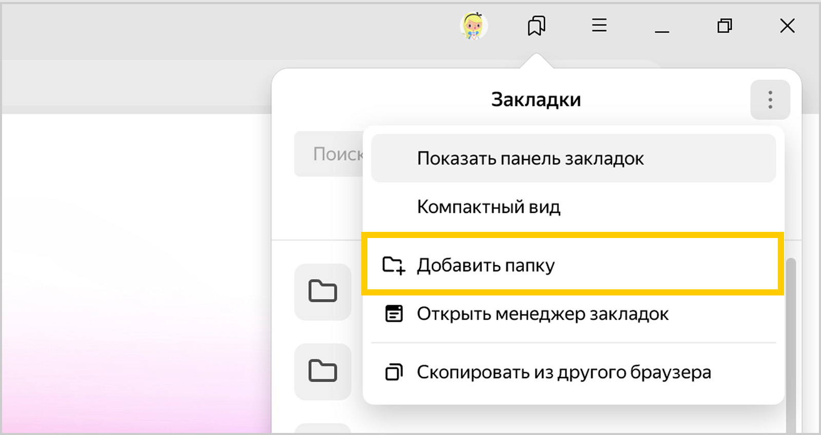 Чтобы разложить материалы по папкам в закладках так, как вам удобно, вы можете: