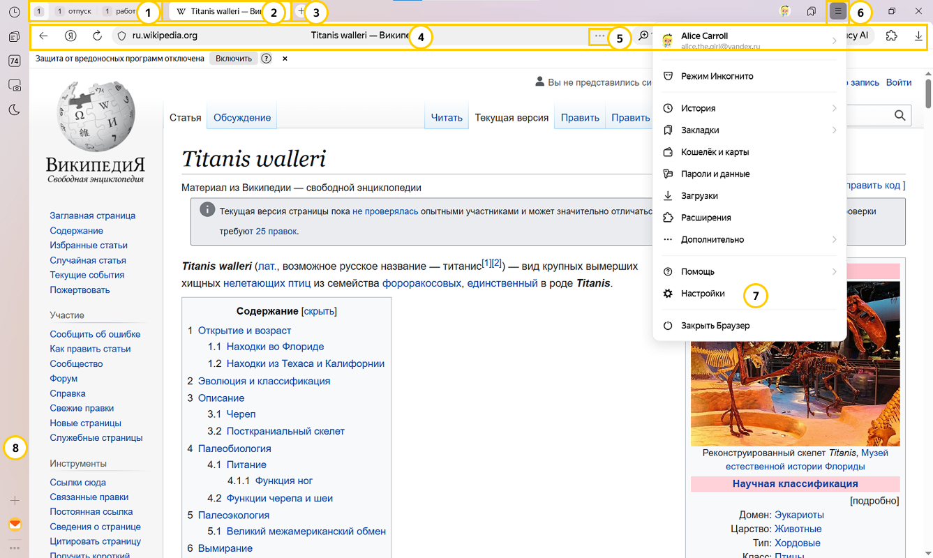 Интерфейс Браузера включает множество элементов. Их можно включать и отключать, настраивая Браузер под свои потребности.