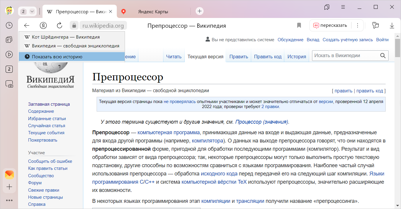 История вкладки содержит 12 последних открытых страниц. Если в этом списке вы не нашли нужной страницы, перейдите ко всей истории. Во всей истории хранятся сайты, которые вы посещали за последние 90 дней. Если сайт нужен вам на более долгий срок, сохраните его в закладки.