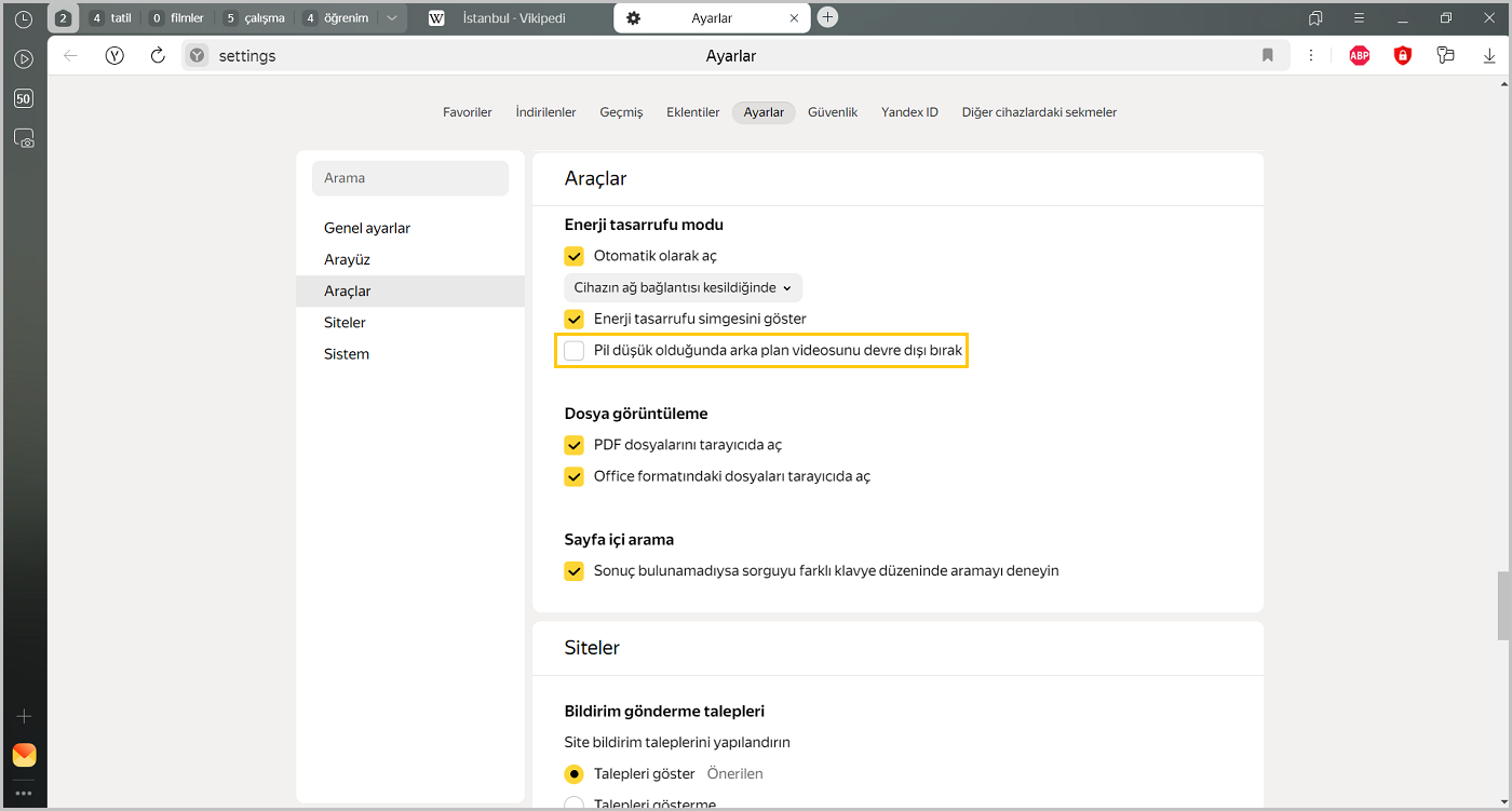 Enerji tasarrufu modu bölümünde Pil düşük olduğunda arka plan videosunu devre dışı bırak seçeneğini kapatın.