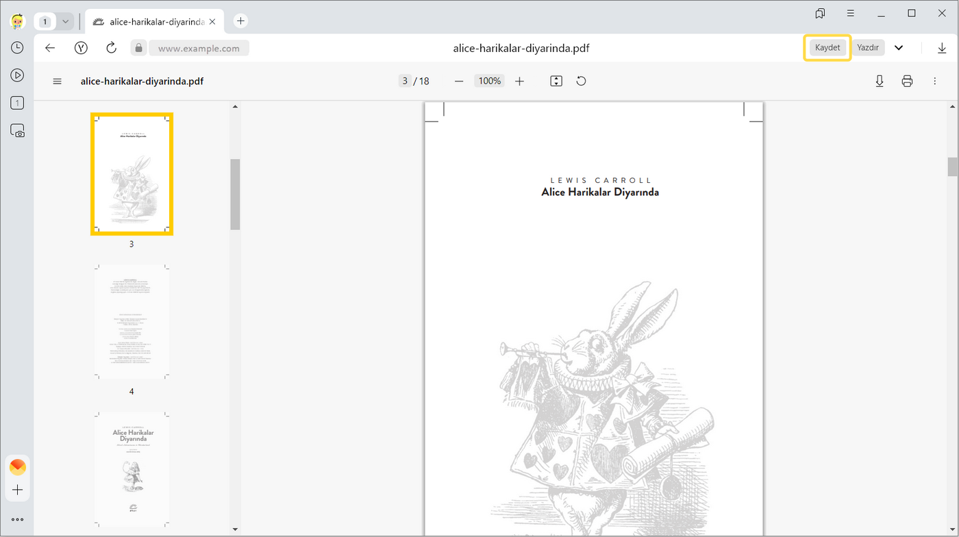 Bir bağlantıya tıklayarak dosyayı indirebilir veya görüntülemek için açabilirsiniz. Yandex Browser dosya formatını destekliyorsa, dosya görüntüleme için açılır; desteklemiyorsa, dosya bilgisayara yüklenir. Dosya indirilmeye başladığında, Akıllı Satır’ın sağında bir dosya simgesi ve  indirme göstergesi belirir.
