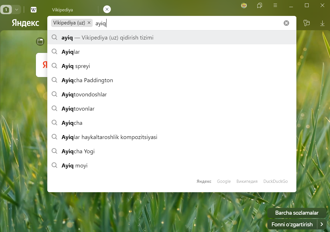 Qidiruv tizimi Aqlli satr, yangi varaq ekrani va kontekst menyusida o‘zgaradi.