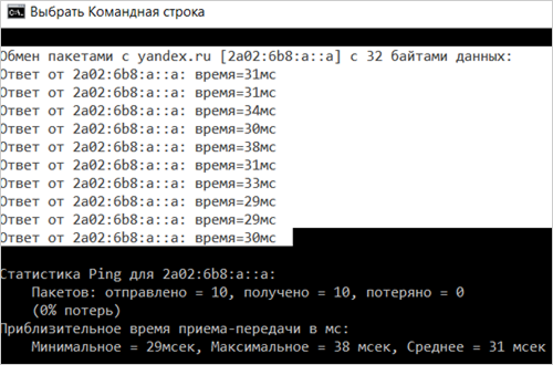 Утилита Ping определяет время задержки между запросом на сервер и ответом, а также потерю пакетов данных. Чем меньше время приема-передачи и количество потерянных пакетов, тем быстрее откроется веб-страница или загрузится фильм.