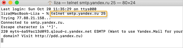 В macOS High Sierra 10.13 и выше программа Терминал не включает утилиту Telnet.