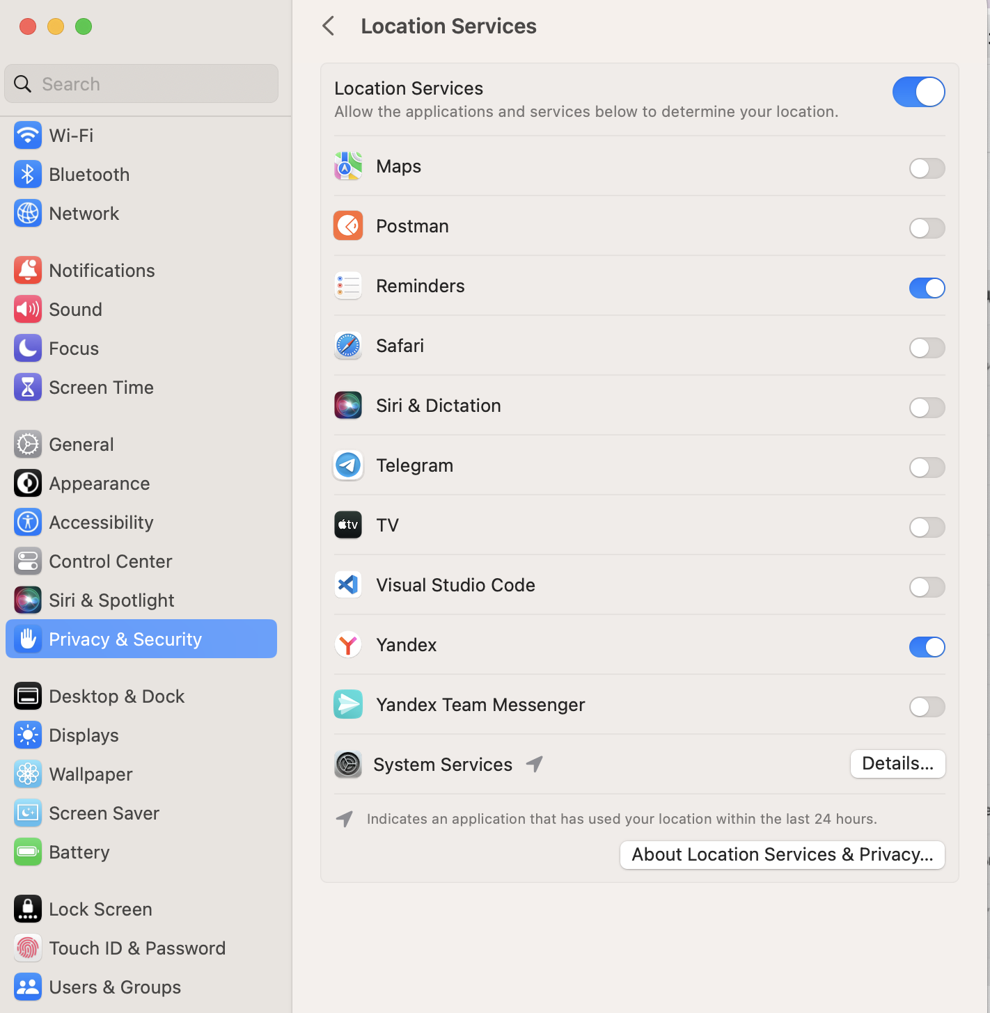 2. Hizmetler konum ögesini etkinleştirin.