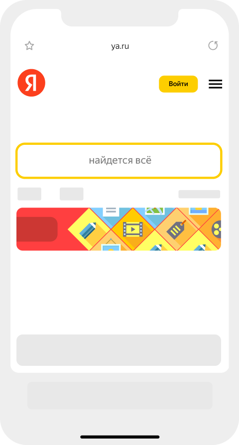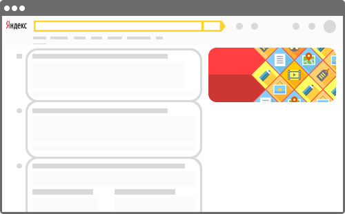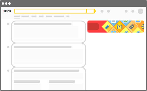A display banner under the search bar is placed on the desktop and mobile versions of the ya.ru page, the new tab page of Yandex Browser for desktop, and on the Yandex Advertising Network sites. It will help you quickly increase brand awareness and ad recall.