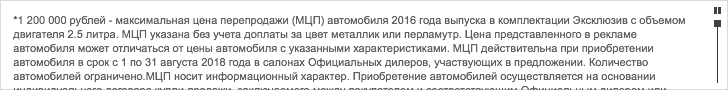 The legal information must be displayed for at least three seconds, and is further available on hover.