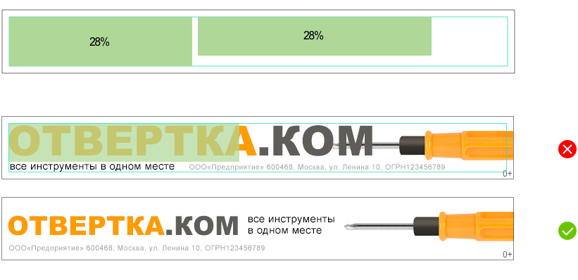 The logo of the brand, product, or technology should not take up more than 28% of the banner space.