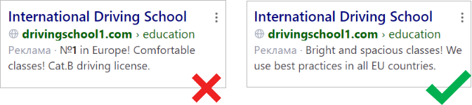Comparatives or superlatives can only be used in your ad text or callouts if you have a statement from an independent expert that your product or service is superior to others. The statement must be published on the landing page or mentioned in the ad. If no such statements are available, do not use words in the superlative form.