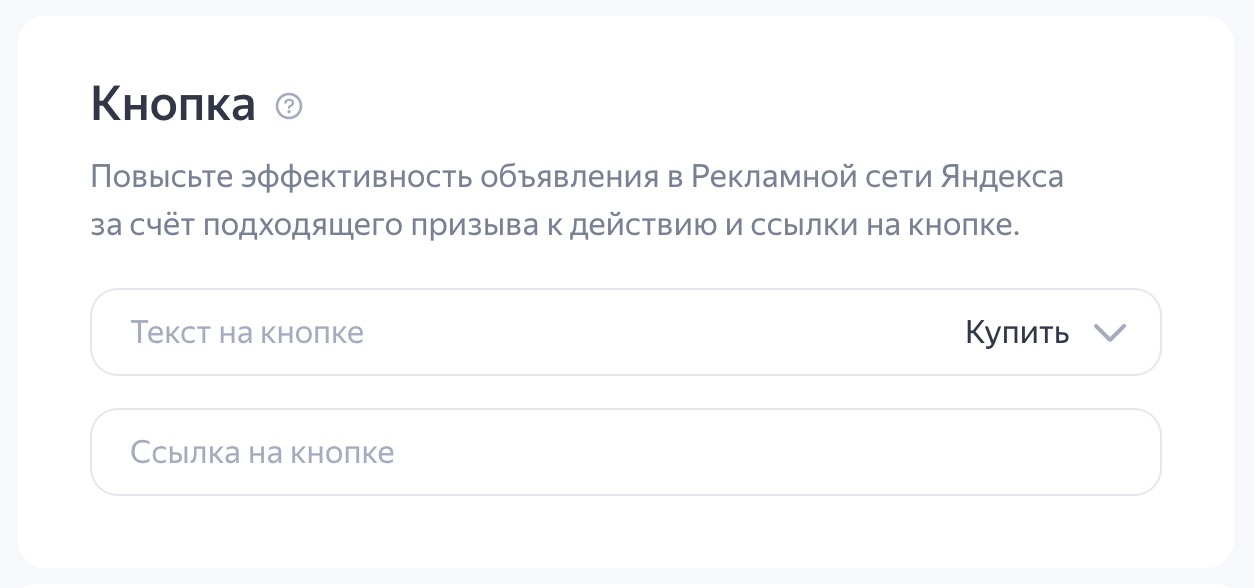Кнопка действия добавляется в видеообъявления медийных кампаний или текстово-графические объявления в Единой перфоманс-кампании с изображением или видео. Она привлекает внимание и побуждает пользователей взаимодействовать с вашим объявлением. Кнопка дополняет объявление еще одной ссылкой. По клику на текст или видео пользователь переходит на одну страницу сайта, а по кнопке действия — на другую. Ссылки также могут совпадать.