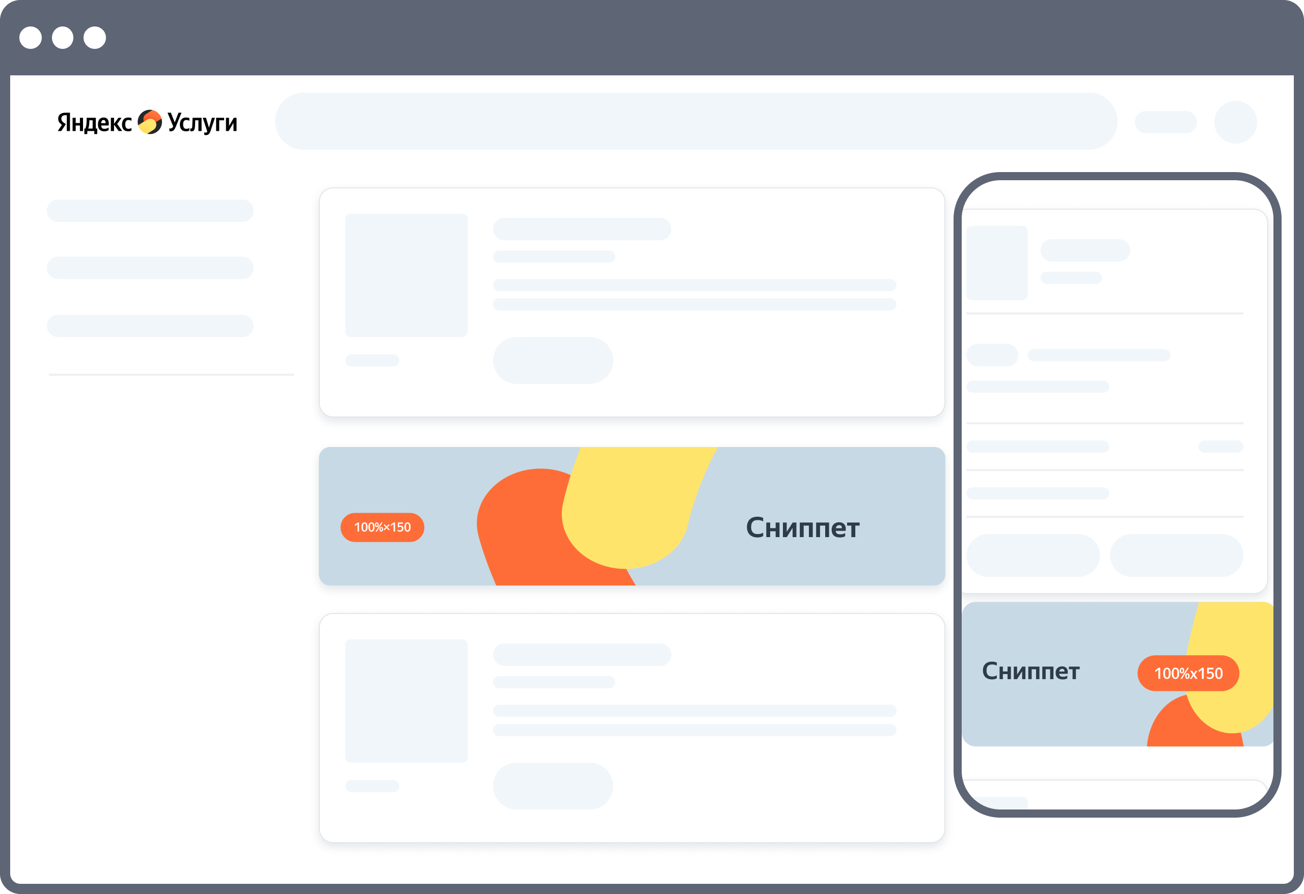 Ваш баннер увидит широкая аудитория поиска Яндекса — он показывается в правой колонке поисковой выдачи и позволяет охватить до 85 млн уникальных пользователей. Формат охватывает запросы в популярных тематиках, например развлечения, финансы, автомобили и других, и не конкурирует с перфоманс-рекламой.