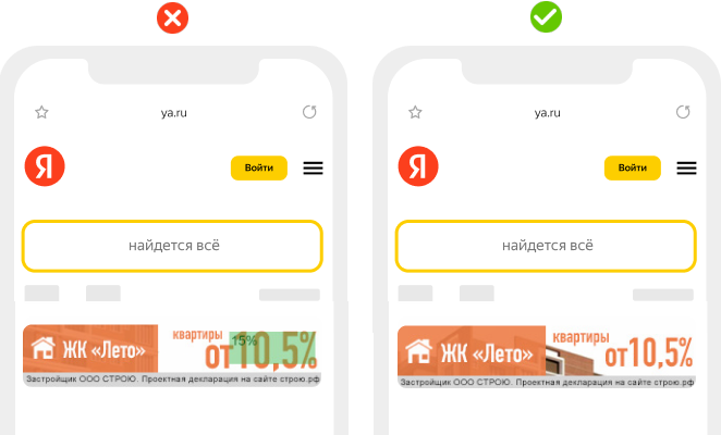 Баннер не должен маскироваться под элементы пользовательского интерфейса — например, под системное окно Windows.