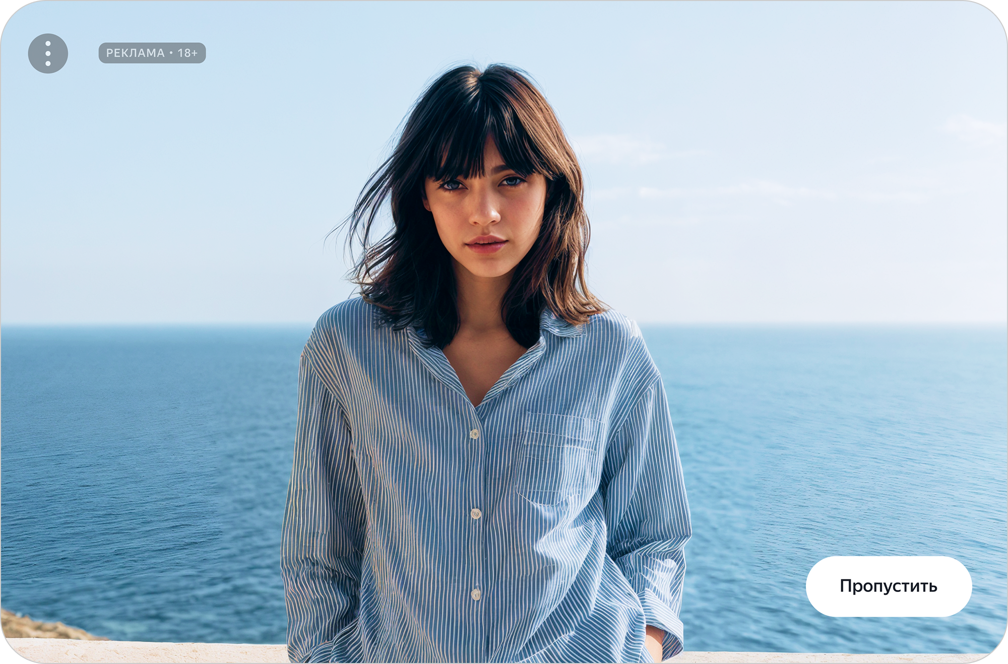 - Connected TV: в приложениях и браузерах на телевизорах, включая Кинопоиск и партнерские видеосервисы, а также на Яндекс ТВ (перед, во время и после основного видео).