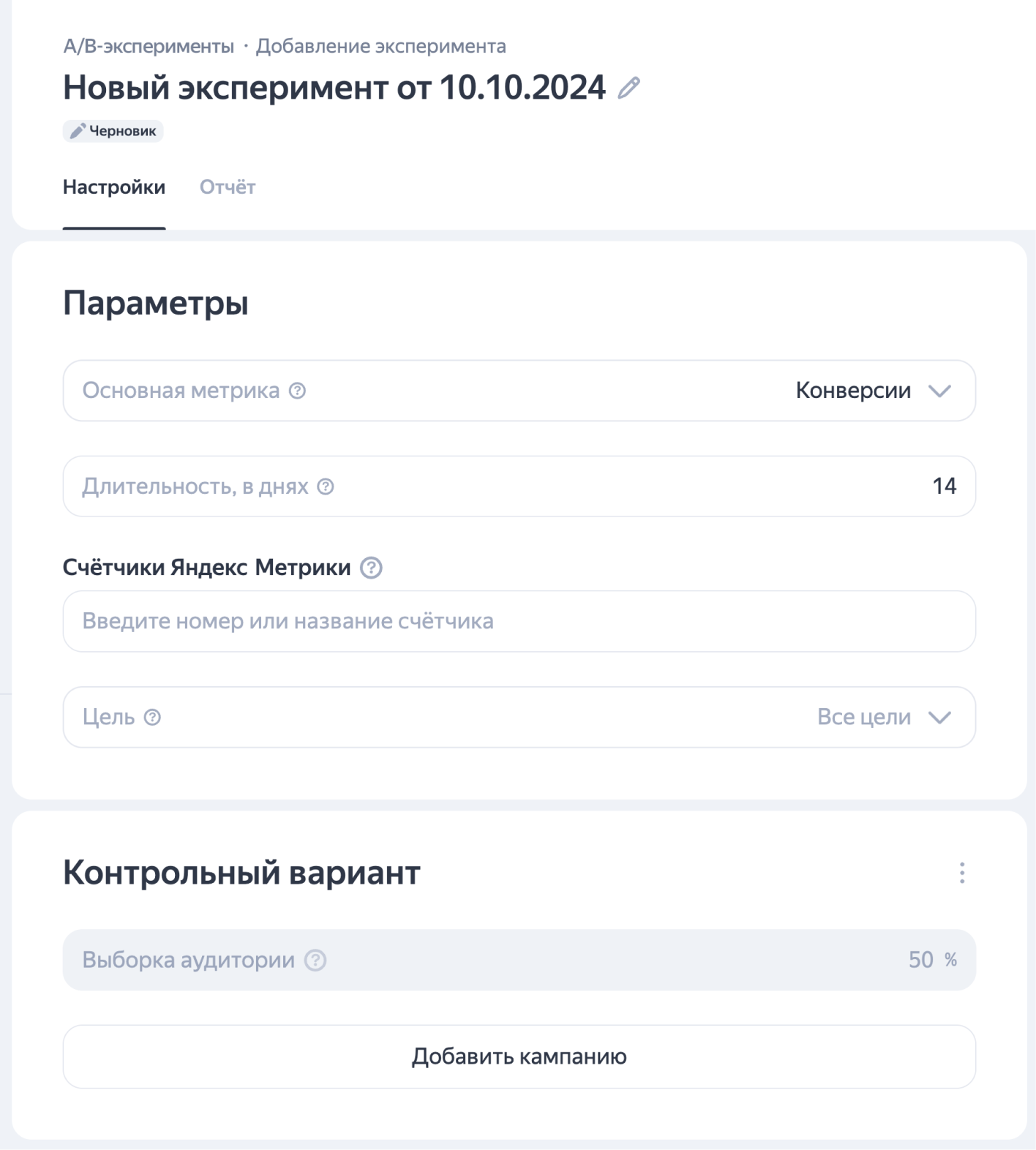 Denemeler, Yandex Direct reklam kampanyalarındaki hangi ayarların işletmeniz için en etkili olduğunu kontrol etmenizi sağlar. Örneğin, farklı reklam ögeleri, promosyonlar ve açılış sayfaları ile kampanyaları karşılaştırabilir veya ayar değişikliklerinin etkinliği nasıl etkilediğini test edebilirsiniz.