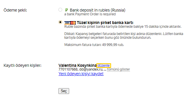 Farklı bir ödeyici seçin veya yenisi için kayıt oluşturup seçin.