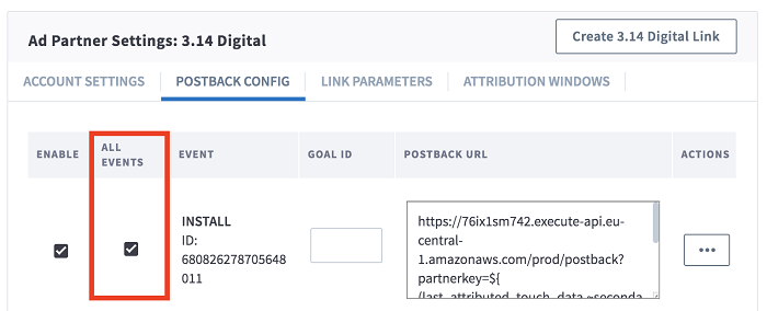 Postback sekmesinde Event Schema alt bölümüne gidin. “Install (App)” etkinliğinin mevcut olduğundan emin olun. Etkinlik gönderimini etkinleştirin – Activate’e tıklayın.