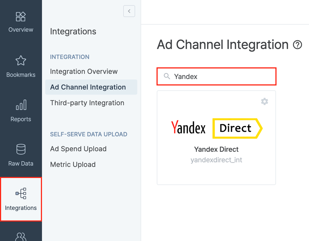 AirBridge arayüzünde, Integrations → Ad Channel Integration bölümüne gidin.