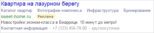 据 Yandex 数据显示,含快速链接的广告可以吸引更多的访客。 与此同时,快速链接无需额外支付广告费用 – 点击快速链接与点击广告的收费方式一致。 如果用户点击广告中的多个链接,只需支付单次点击费用。
