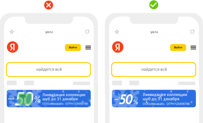请勿使用黄色作为按钮或徽章颜色,因为标准 Yandex 页面设计元素使用这种颜色。 可接受使用 #F0E5AD 及以上色号的黄色。