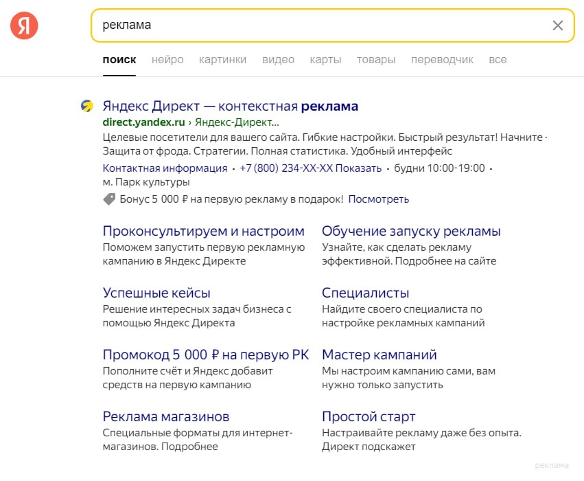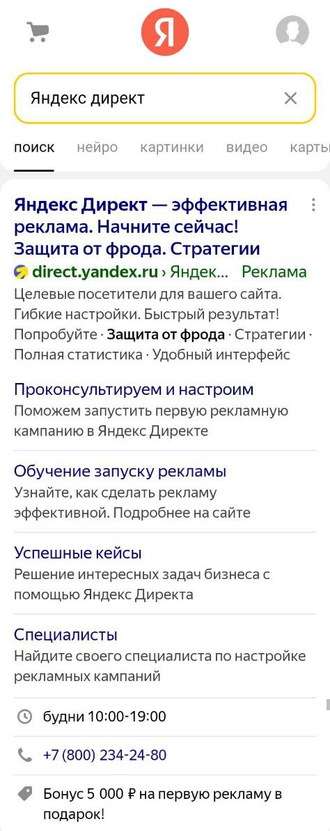 当用户在搜索栏中输入查询时,广告会出现在搜索提示列表中。 它可在桌面搜索、移动搜索和 Yandex 应用程序中使用。 这种格式带来了 5% 的流量增长,其点击率约为 16%。