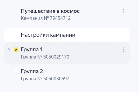 在 Yandex Games 上创建游戏推广后,广告系列会显示在 Yandex Direct 中。 您只能在 Yandex Games 的控制台中查看或编辑推广参数。 在 Yandex Direct 中,您只能查看此类广告系列的列表及其费用。