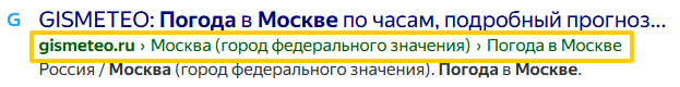 Breadcrumbs are a series of links to site sections where the found page belongs. It helps a Search user quickly assess the amount of site-based information or the type of content and quickly navigate to the desired section.