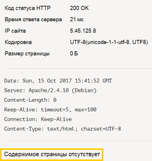 - Размер содержимого страницы. Он должен быть больше 0 и соответствовать HTTP-заголовку.