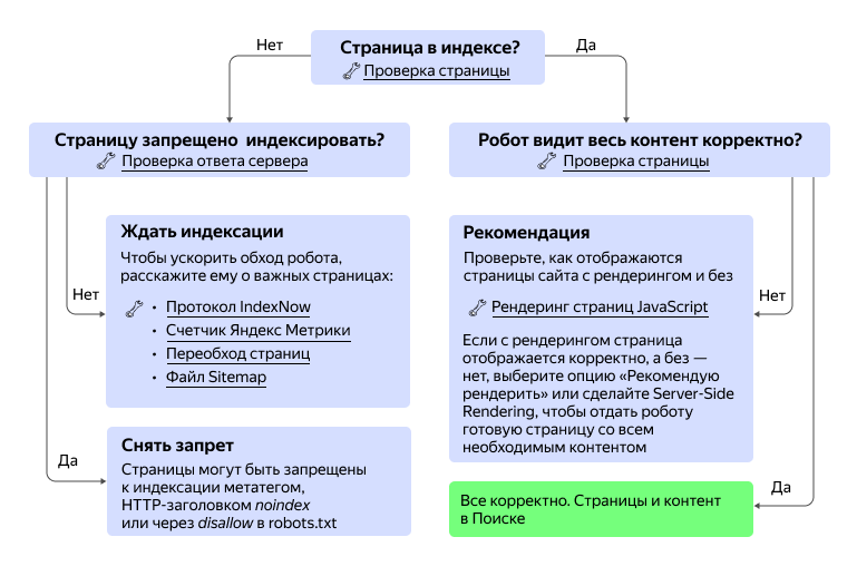 Какой способ индексирования выбрать — зависит от особенностей сайта и конкретной ситуации. Рекомендуем совмещать подходящие вам способы. Например, можно добавить в Яндекс Вебмастер карту сайта, включить обход по счетчику Метрики и установить плагин IndexNow. Также ссылки на страницы можно добавлять на переобход вручную, на странице Переобход страниц.