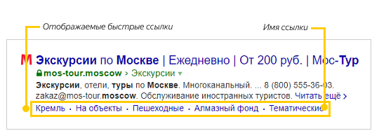 Робот Яндекса может сформировать для сайта быстрые ссылки.